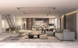 Energy / systems: A+ energy rating; photovoltaic with net metering; solar water heaters; autonomous heat‑pump for cooling/heating; 10 cm thermal façade; highly energy‑efficient aluminum systems; smart‑home pre‑wiring