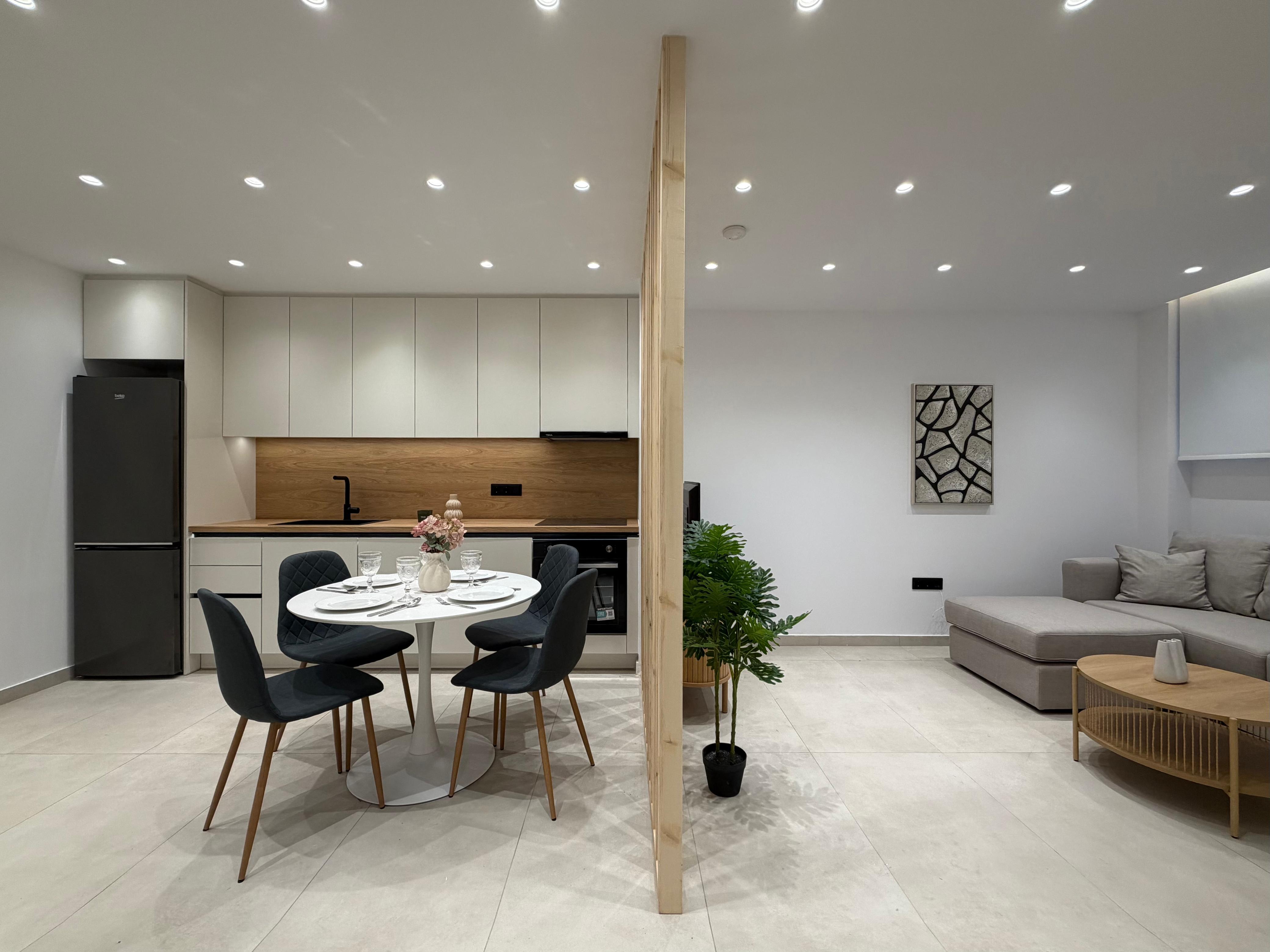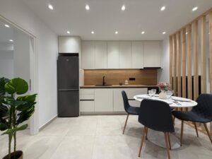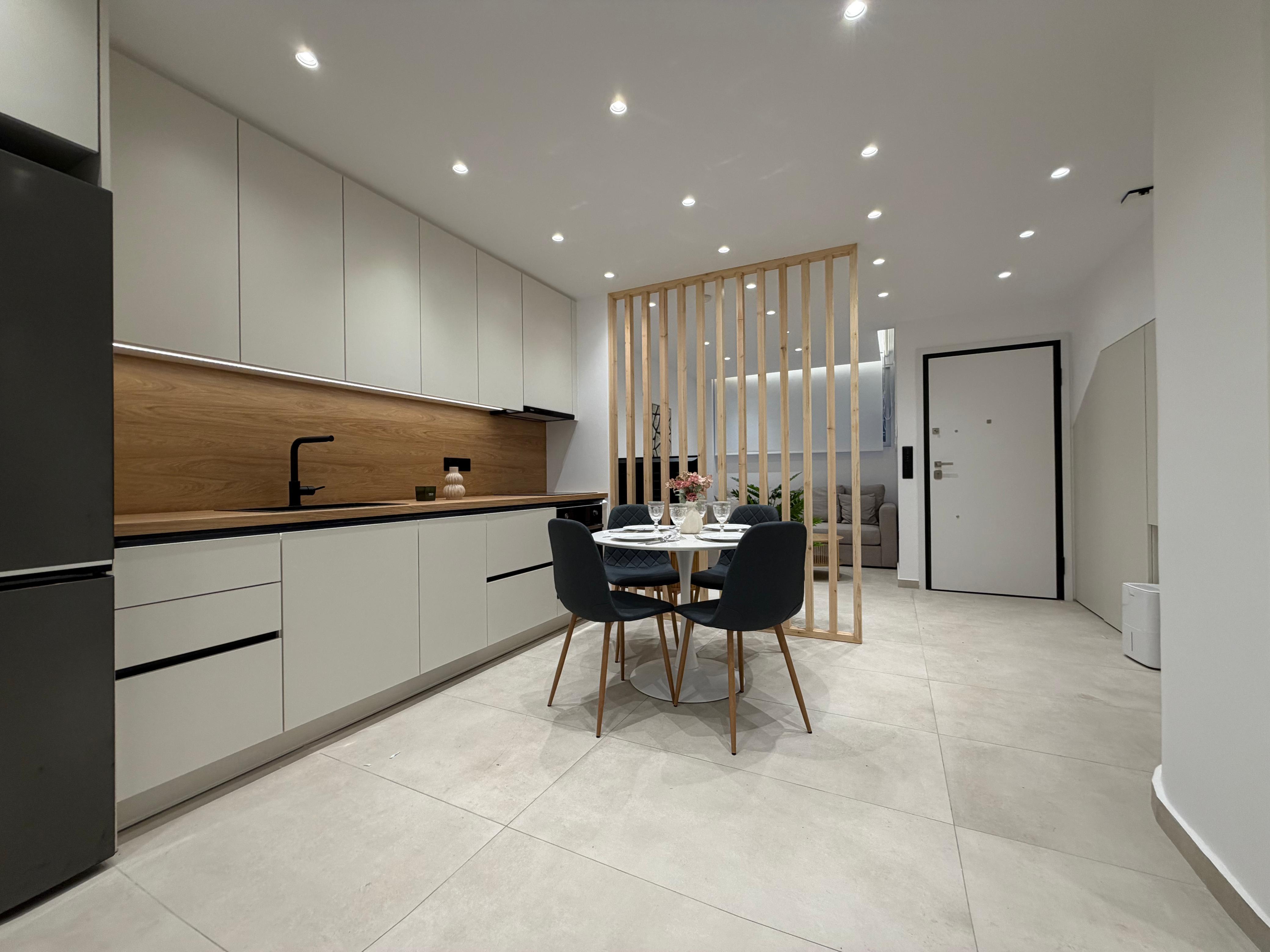 a modern urban redevelopment featuring fully renovated apartments with a contemporary architectural design. Unit B is a standout 61.10 sq.m. garden-level residence, offering a rare combination of private outdoor space and central city living. The unit is delivered turnkey, fully furnished, and equipped with high-end electric appliances, air conditioning, and security features like electric shutters and a security door. Its proximity to the metro station and local amenities makes it a prime asset for both long-term rental and capital appreciation.