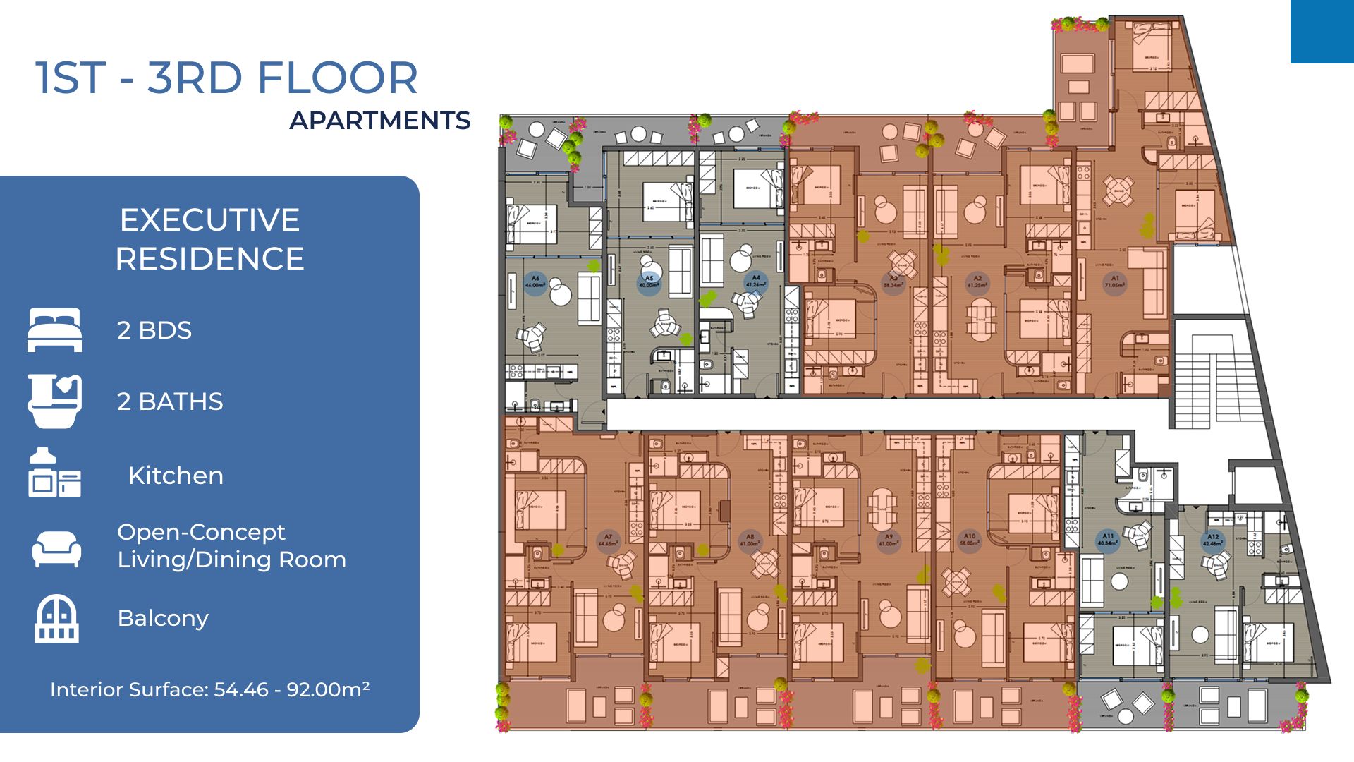 Unit A1 — 2 bed / 82.85 sqm — Rooftop Pool access & Golden Visa Eligible — 325,000€