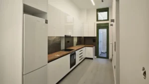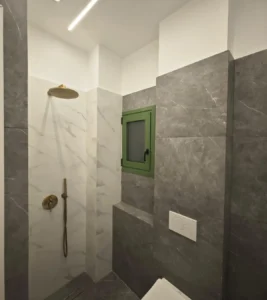ready and fully furnished apartment, part of the Modern Piraeus Living project, offers a unique blend of contemporary comfort and the timeless allure of Greek coastal living in the heart of Piraeus. Available for €250,000 , this ground floor unit provides a covered area of 60 m2.The unit features a modern, seamless design with 1 bedroom and 1 bathroom. The interiors showcase modern finishes, including recessed and ambient lighting in the ceilings, and bright walls complemented by touches of rich green and warm wood countertops in the kitchen.