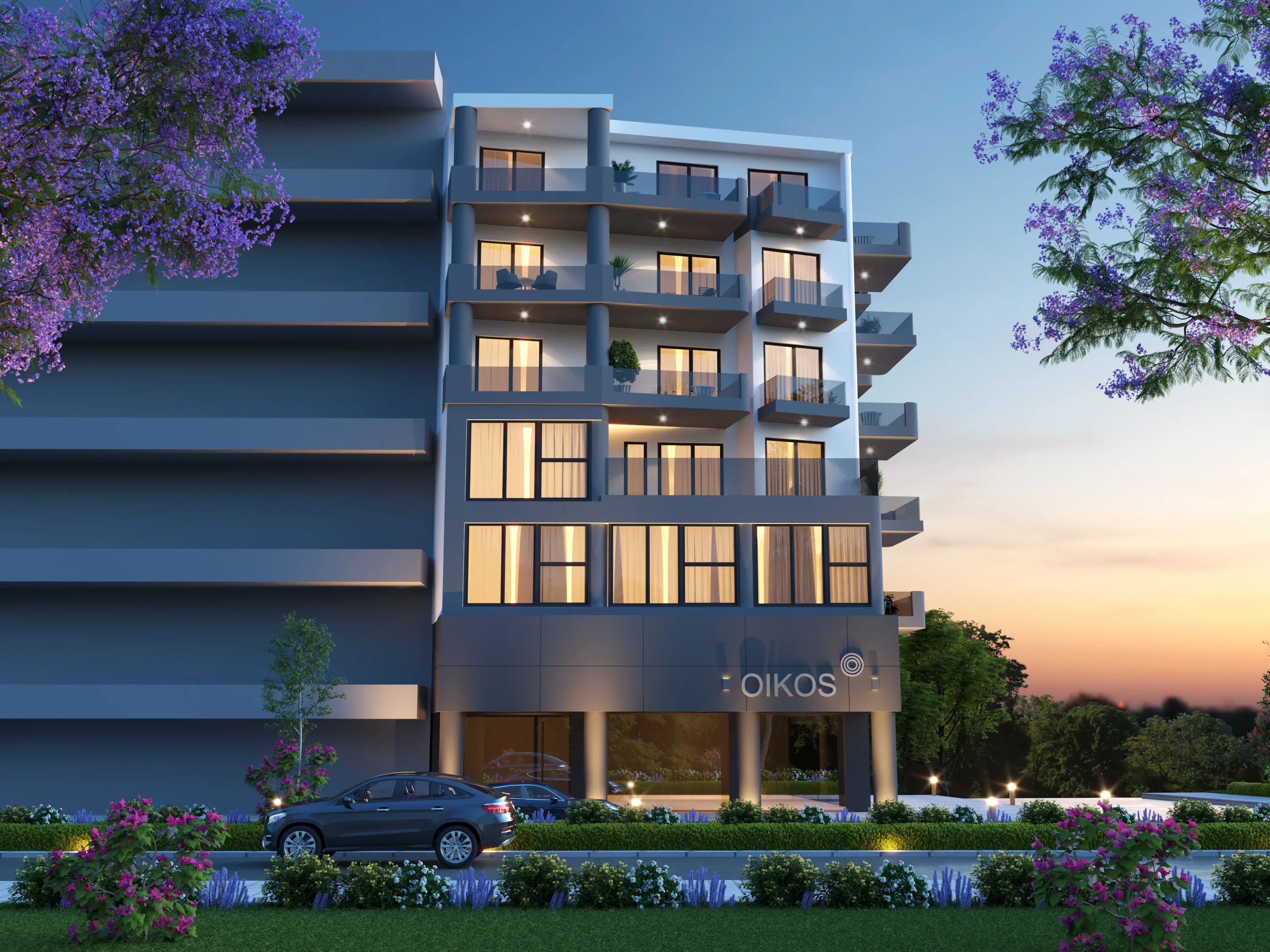 This is the NEOS KOSMOS PROJECT (PARK 1) , an apartment building located in a central spot of the Neos Kosmos district in Athens.
