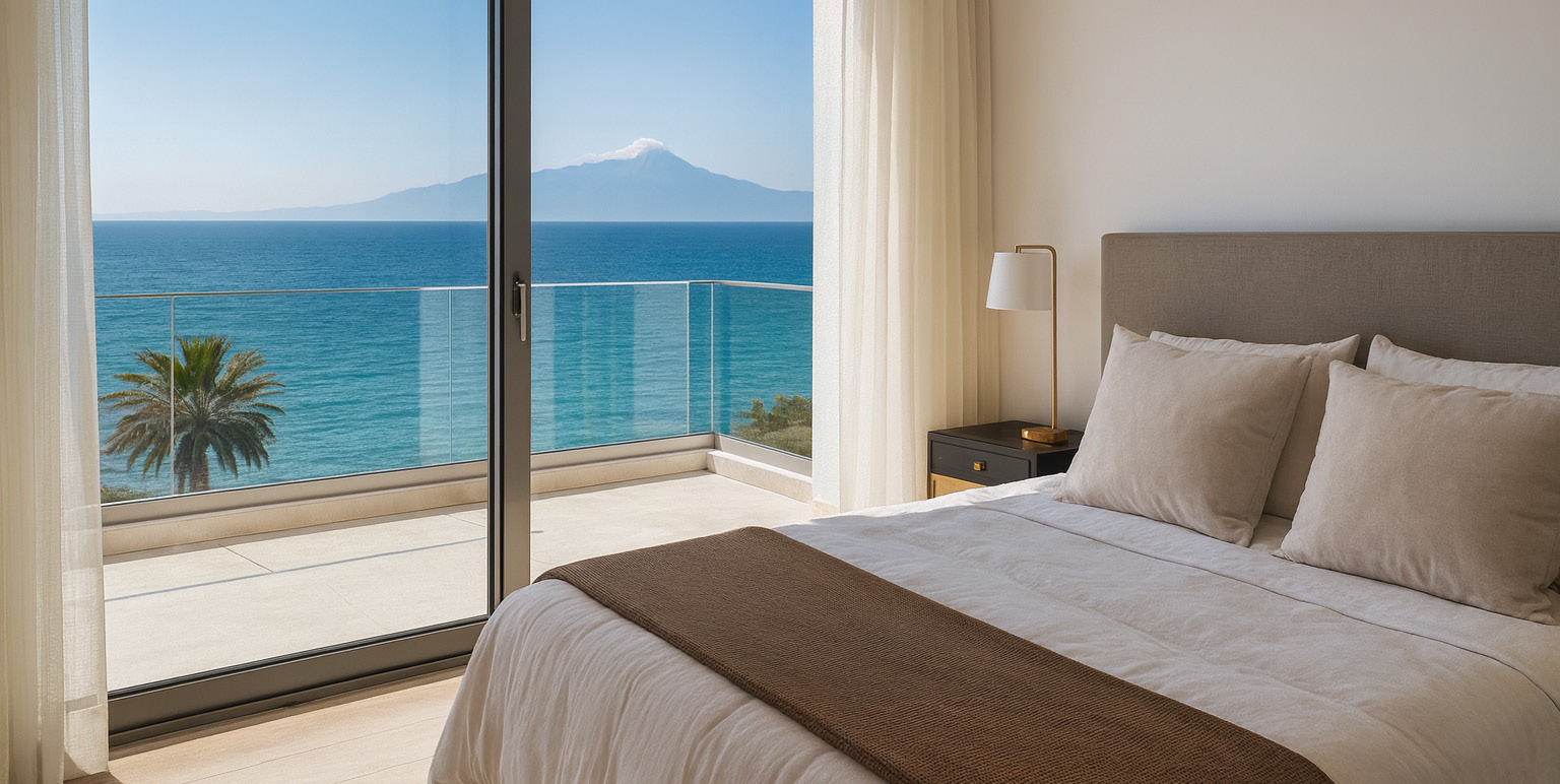 The project is situated in the prestigious Kalamaria district, just 300 meters from the sea. Residences are designed with a high-efficiency thermal-insulated facade, heat pump climate systems, and premium finishes including porcelain tiles or high-quality vinyl. Security is managed via an integrated access control system. The location offers proximity to the Aretsou Marina (5-minute walk) and the future Aretsou Metro station.