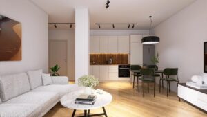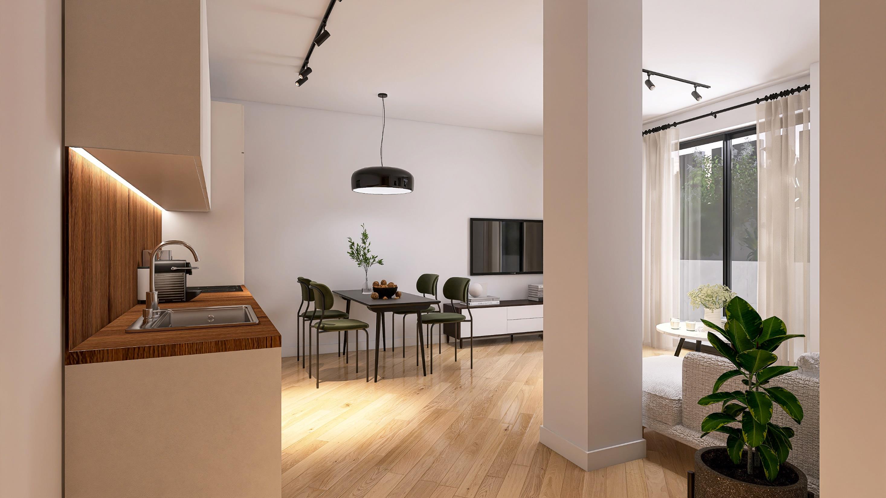 Unit 0.4: This sleek 83.55 sqm 1-bedroom apartment offers a private 22.25 sqm garden area and includes dedicated parking31. Located just 1.8 km from the seaside, it combines urban convenience with coastal proximity32. Priced at €295,000, it features premium Grohe sanitary ware and European kitchens33.